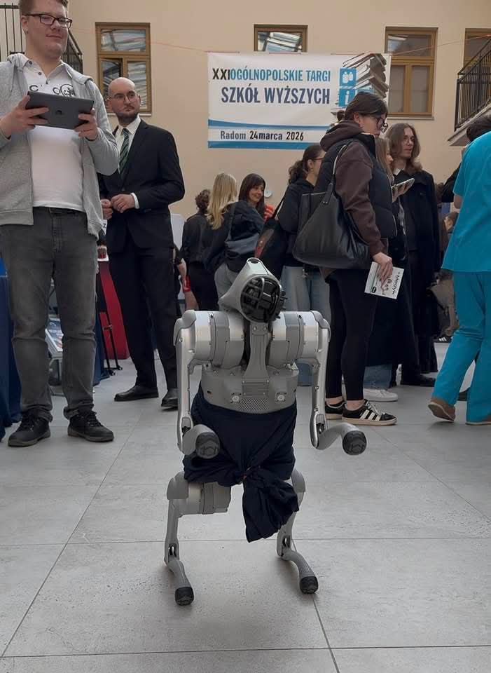 Wydział Mechaniczny zaprezentował robota mobilnego, kroczącego typu „robopies”. Pokaz miał na celu demonstrację praktycznych zastosowań wiedzy inżynierskiej oraz systemów mechatronicznych rozwijanych w naszej jednostce wspólnie z kołami naukowymi. Prezentacja urządzenia spotkała się z zainteresowaniem maturzystów planujących edukację techniczną.